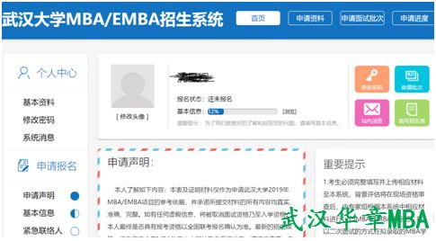 (一)提前面试 去年考生报考是在2018年7月9日9:00—9月3日登录MBA教育中心网站,(今年的等官网公布,应该就是近几天)完整填写申请表并提交相关电子材料,申请参加提前面试。具体要求及流程安排请见《武汉大学2019年工商管理硕士提前面试申请相关说明》。