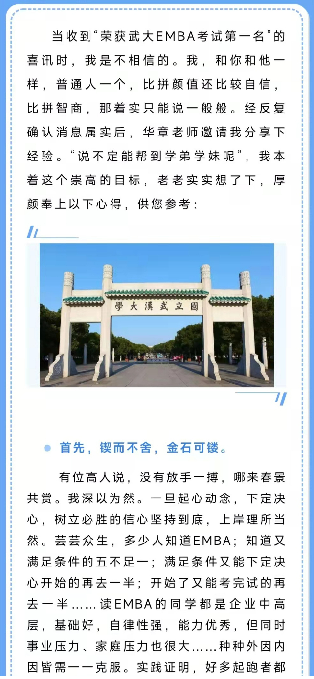 备考心得 | 武汉EMBA状元,探花备考分享